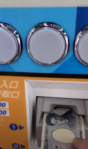 珍しい うまい棒の自動販売機があったので やってきました。 1000円札を入れます。 うまい棒のボタンを押します。 うまい棒が出てきました! 100円玉が10枚でてきました そう、両替機なんですねこれ。 ゲームセンターに設置されている両替機で 両替…