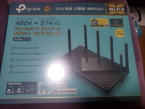我が家もWiFi6 対応端末 (5Gスマホ)を持つ家族が増えたので Wi-Fi6対応ルーターを導入することにしました。 6本のアンテナ 電波すごそう 本体、LANケーブル、ACアダプター 付属LANケーブルがCAT5eでした 最大1Gbps対応のケーブルですが ルーターの最大速度は…